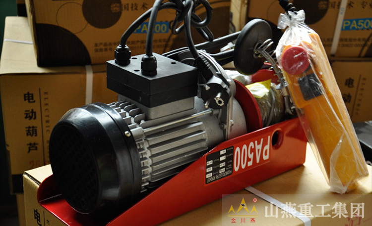 PA500微型電動(dòng)葫蘆為山燕重工主打微型電動(dòng)葫蘆之一,分運(yùn)行式微型電動(dòng)葫蘆與固定式微型電動(dòng)葫蘆,可選擇單鉤或者雙鉤版本。單鉤額定起重量為250kg,起升速度10m/min,起升高度可達(dá)12m;PA500雙鉤微型電動(dòng)葫蘆額定起重量可達(dá)500kg,起升速度5m/min,起升高度5m。