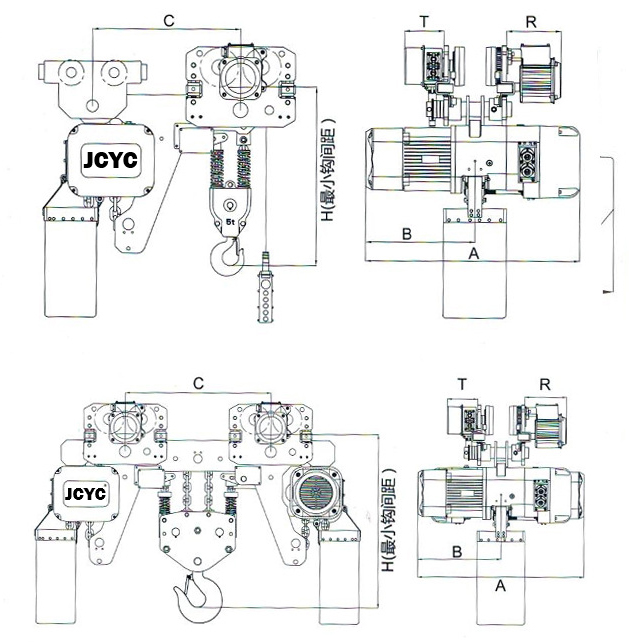 | 型號 | 起重量Ton | 單位mm | |||||||||||||